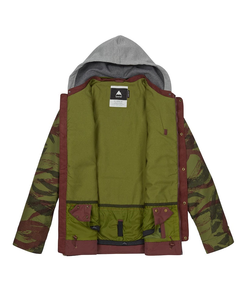 Der Tarnärmel Und die kontrastierende Kapuze mit verstellbarem Kordel macht die Dunmore -Jacke zu einem perfekten Modell für die Tage auf dem Snowboard, aber auch zur Freizeit.