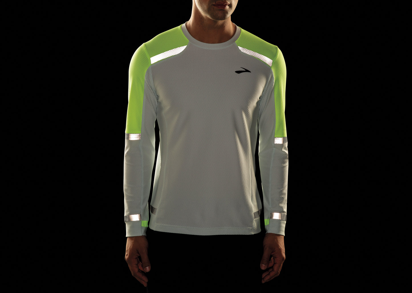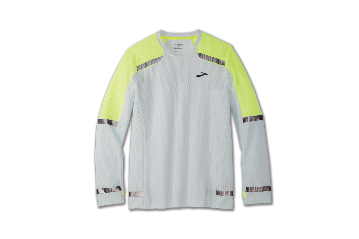 Dank Brechungseinsätze von der Brooks lange Holzkohlehülsen-T-Shirts Sie können auch nachts oder an den wolkensten Tagen laufen.