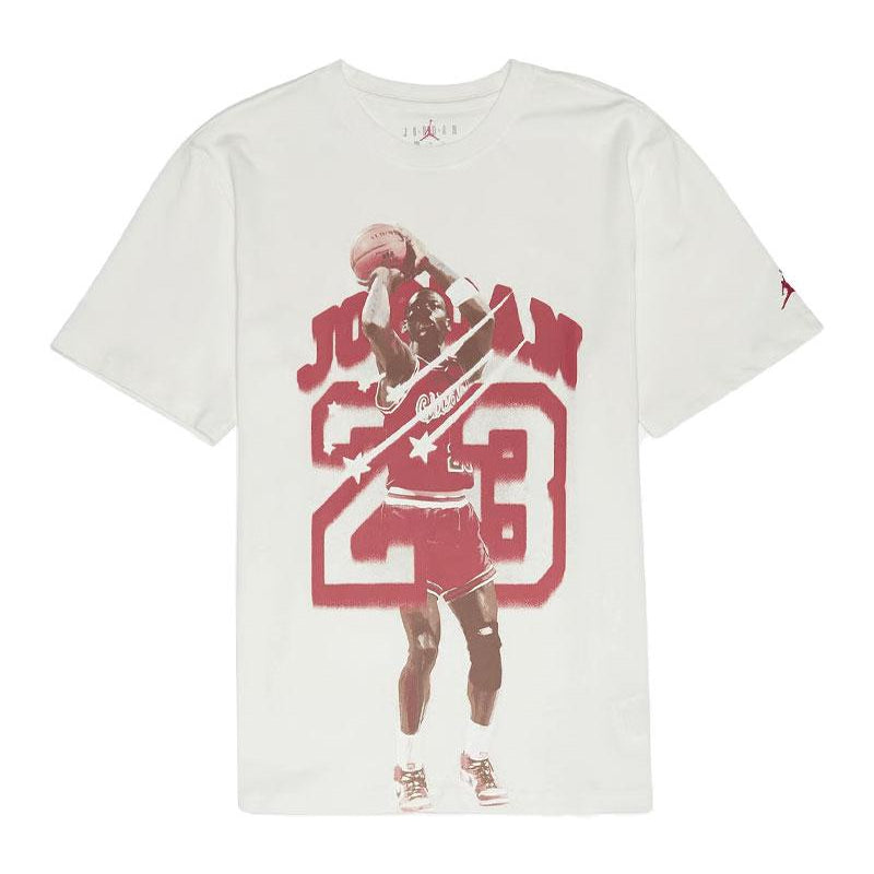 Die vordere Grafik mit dem starken Einfluss der Nike Jordan T -Shirt Es verleiht dem ungezwungenen Look einen Hauch von sportlichem Stil.