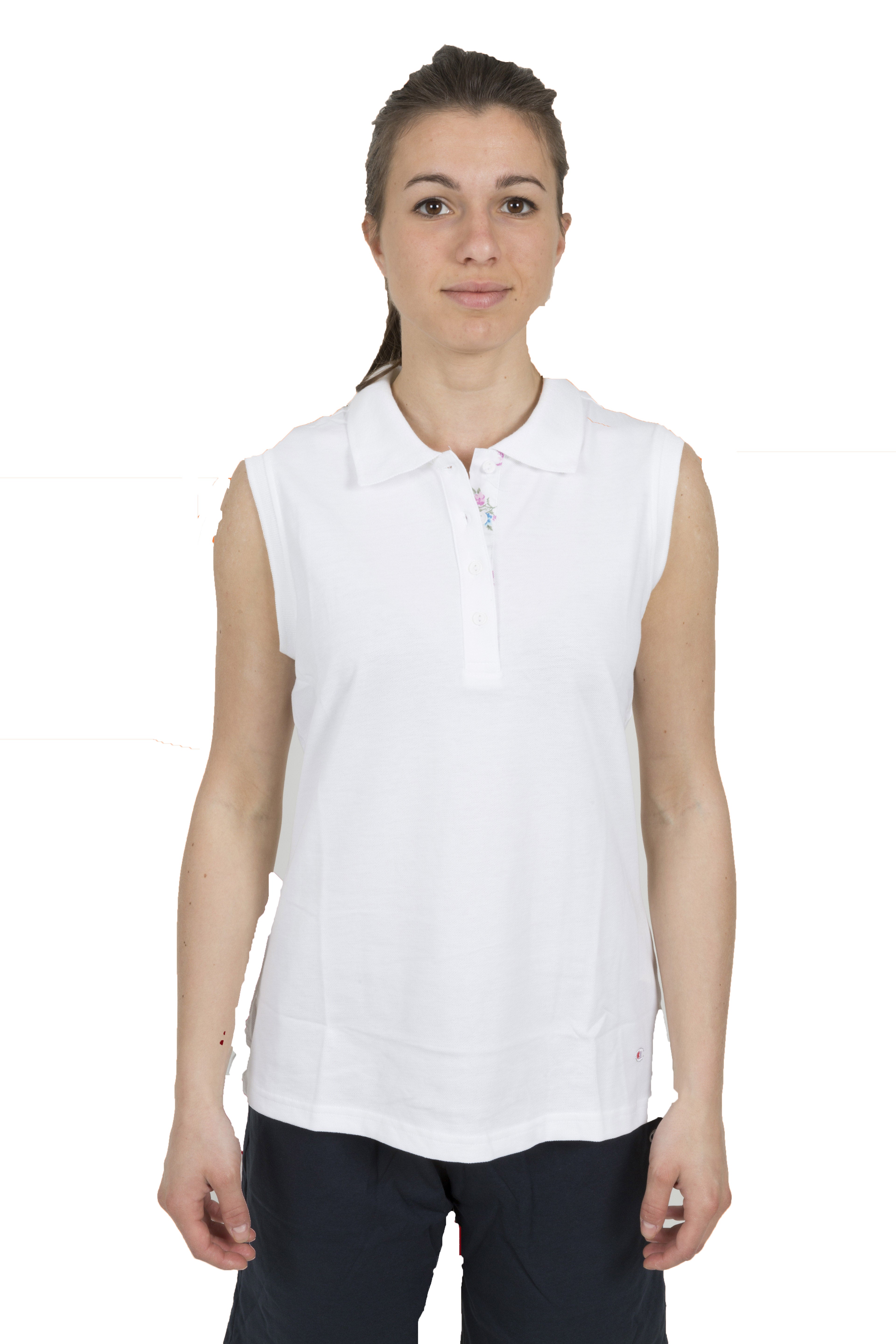 Schön und praktisch und der Champion-Frauenstab hat einen elastischen Rippenkragen, einen Verschluss mit 4 Tasten und internem Profil mit floralen Fantasie, runden Ärmeln, Seitenschlitzen und einer normalen Slic-Passform.