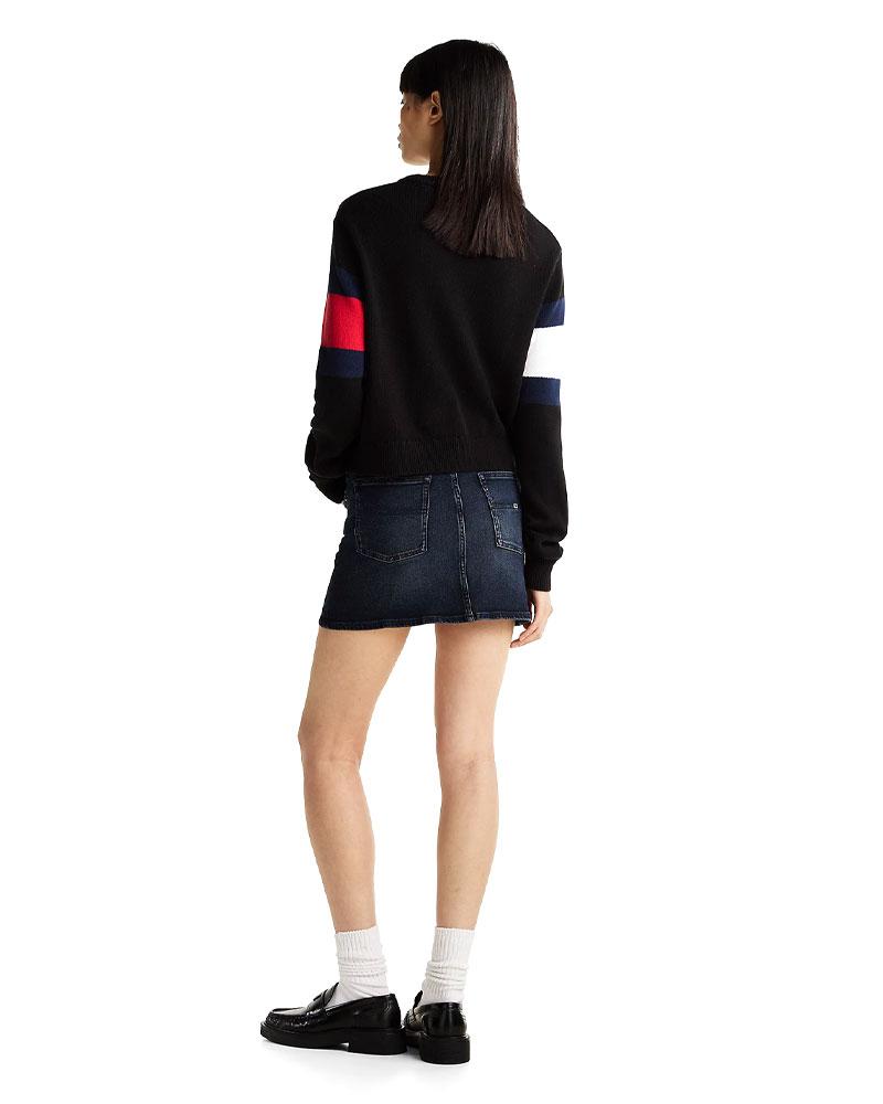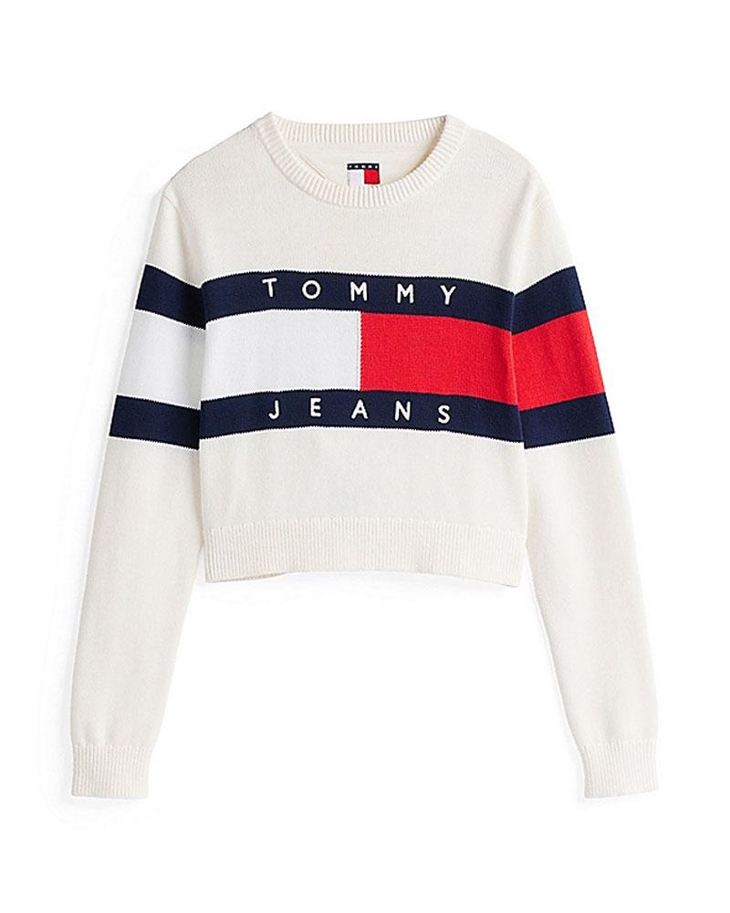 The Pullover Center Flag Women's sweater it is exalted on the front by the color block motif in the iconic colors, which recompose the logo of Tommy Jeans.