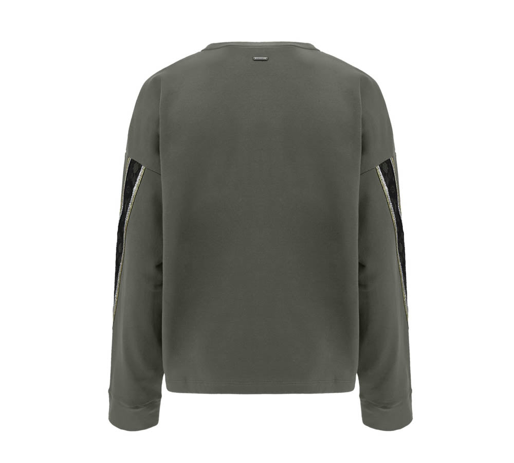 Du look frais, le banda scintillant en or noir du dimanche est un sweat-shirt Giolcollo caractérisé par un L'impression avant scintillante maxi Et Deux groupes qui longent les manches.