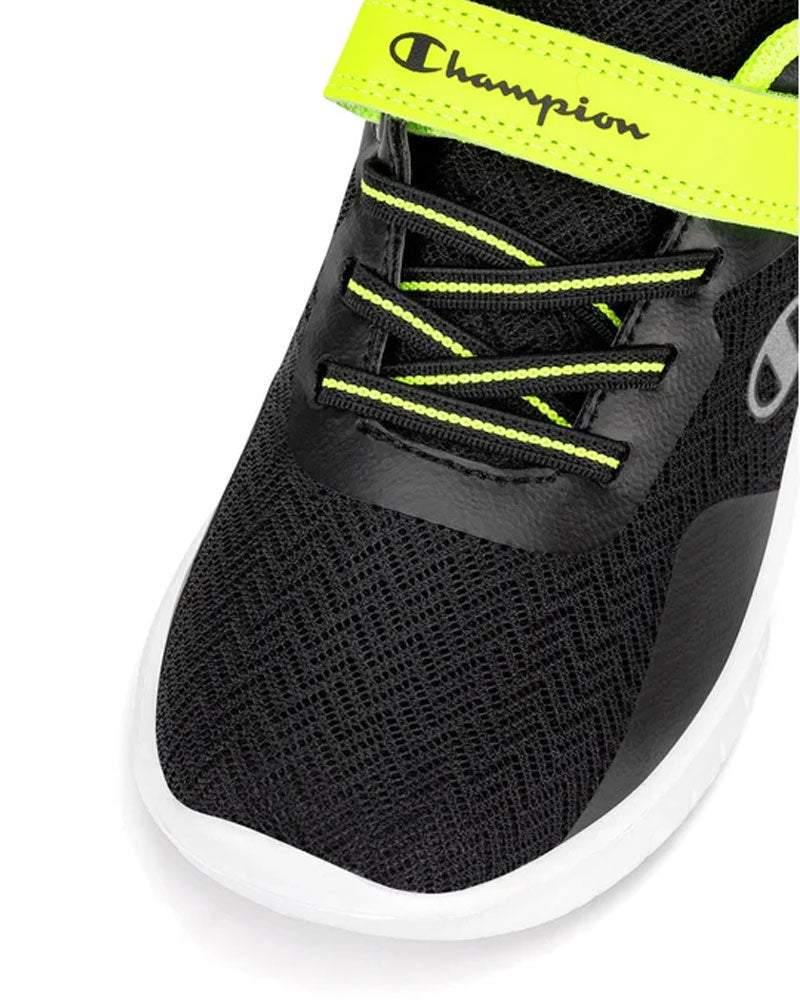 Champion sulle Scarpe Softy Evolve Bambino ha voluto inserire la chiusura con il velcro per aiutarlo a non avere nessun problema nel fissare bene la scarpa al piede.
