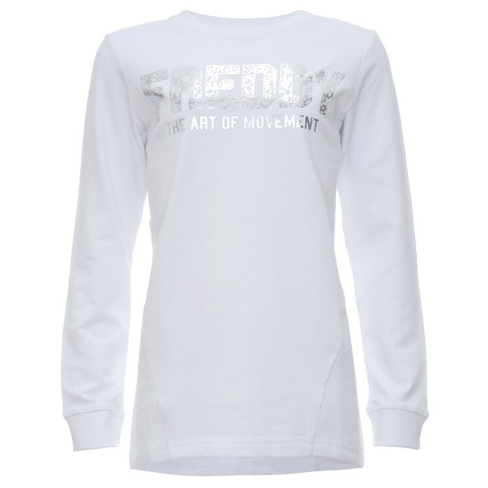 En coton le Sweat-shirt Freddy Il a une longue coupe et l'écriture Freddy s'est métallisé à l'avant.