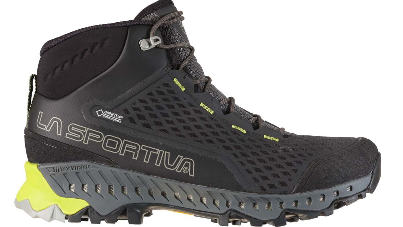 Bottes De la randonnée du Sportiva Stream GTX surround Ils sont imperméables et respirants grâce à la technologie Gore-TEX surround, qui offre une plus grande surface de ventilation avec une semelle supérieure, une semelle intérieure et un bosquet à EVA et TPU perforés latéralement.