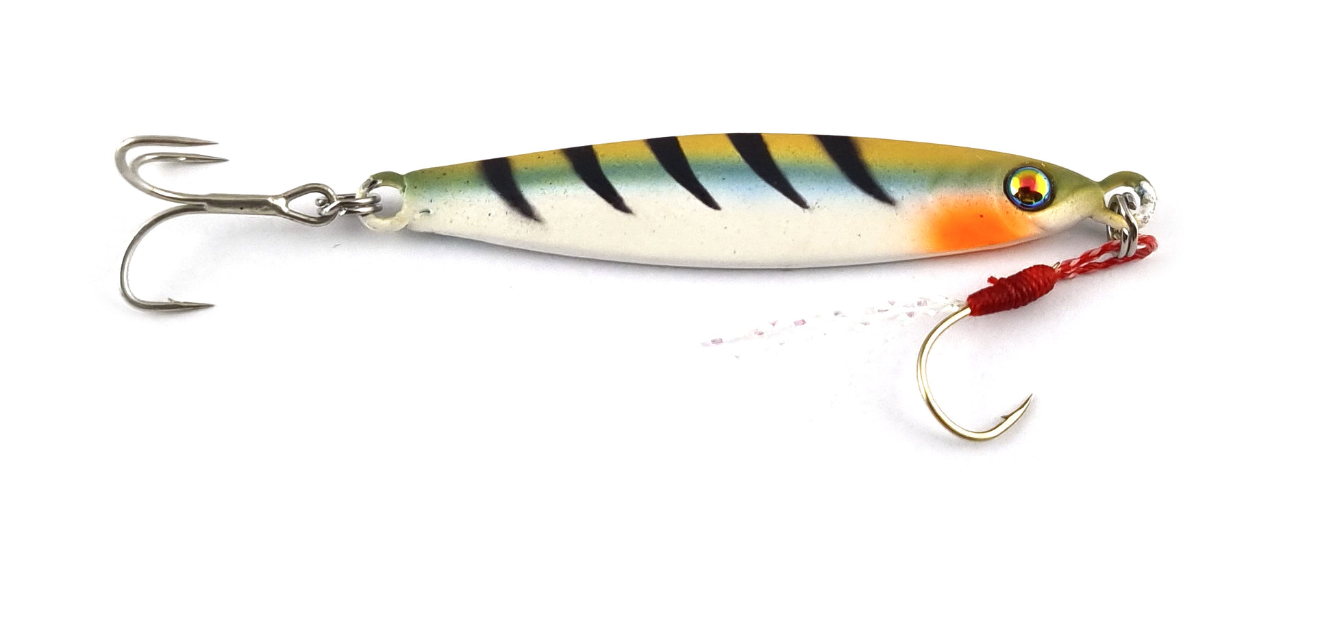 Questo metal jig è armato con una ancoretta Owner e un assist hook C'ultiva: l'Artificiale Tokon Jig è la scelta giusta sia per fare short jerking in verticale, ma soprattutto per la pesca orizzontale veloce sulle mangianze.