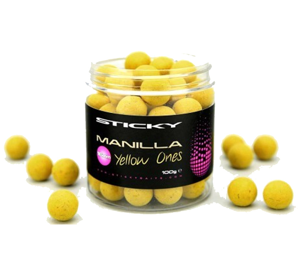 Si tratta di boilies galleggianti dall'altro potere attrattivo, non solo per il gusto Manilla, grande novità Sticky Baits per il 2016, ma anche per il colore giallo fluo, particolarmente indicato per la pesca in acque torbide o limpide ma profonde.