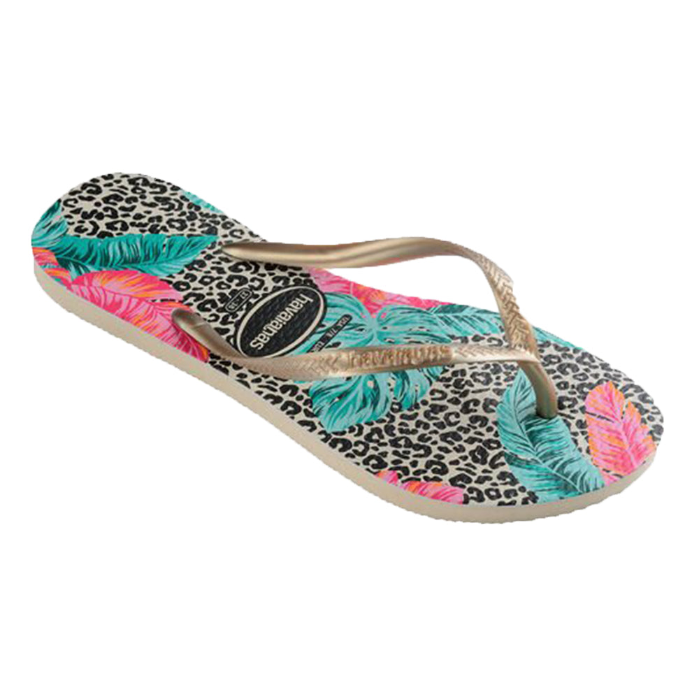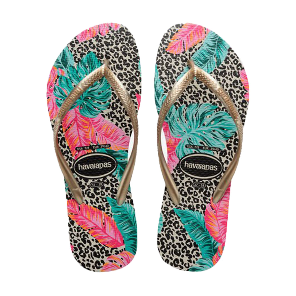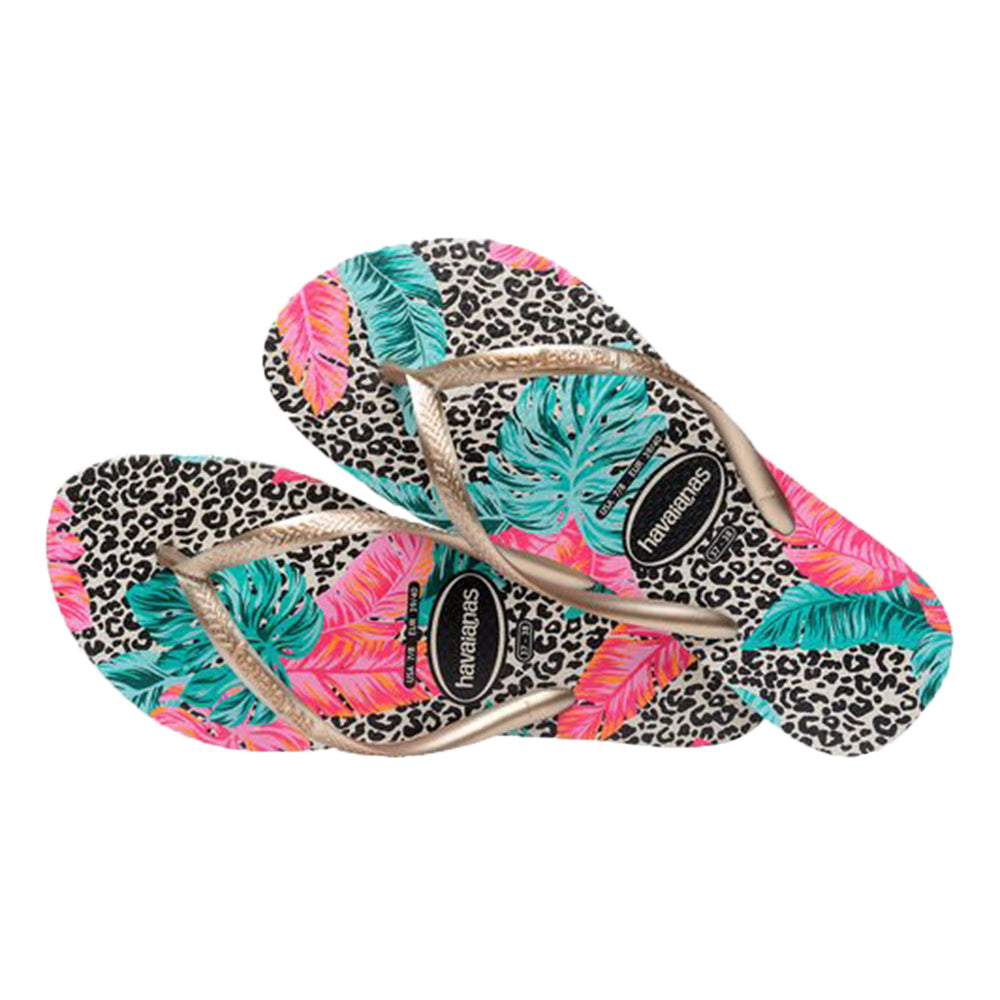 Questo modello di Infradito Havaianas vede il mix tra stampe animalier e floreali stampate sul modello Slim.