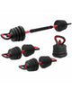 - Set 3-in-1 multifunzione e regolabile che combina tre diversi attrezzi in un unico prodotto che può essere trasformato rapidamente e facilmente in manubri (dumbbell), bilanciere (barbell) e kettlebell.