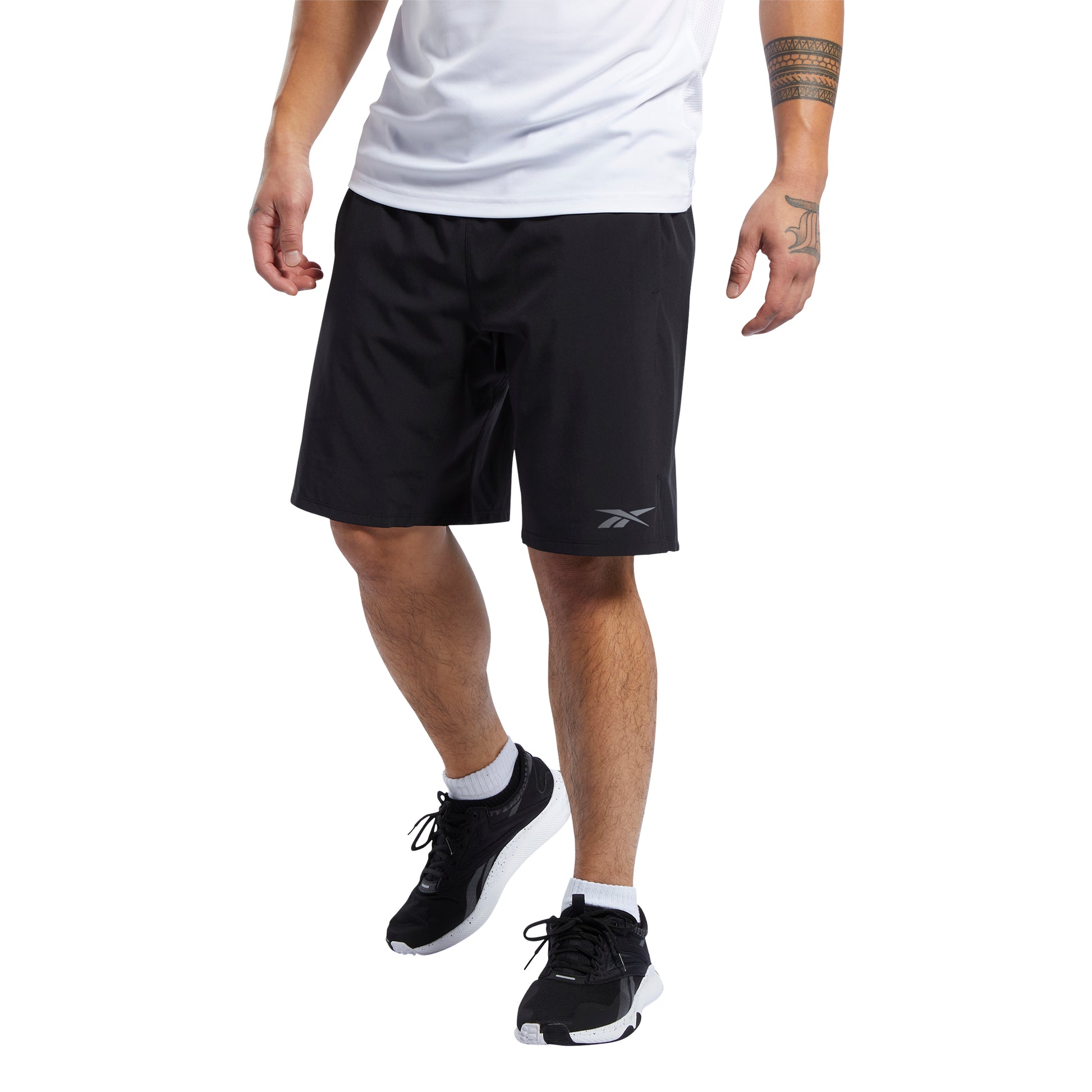 Gli Short Reebok dalla vestibilità regolare sono realizzati in poliestere misto con un tessuto Speedwick che lascia la pelle fresca. Questo bermuda è dotato di tasche per le mani, cordoncino elastico in vita e spacchi laterali.